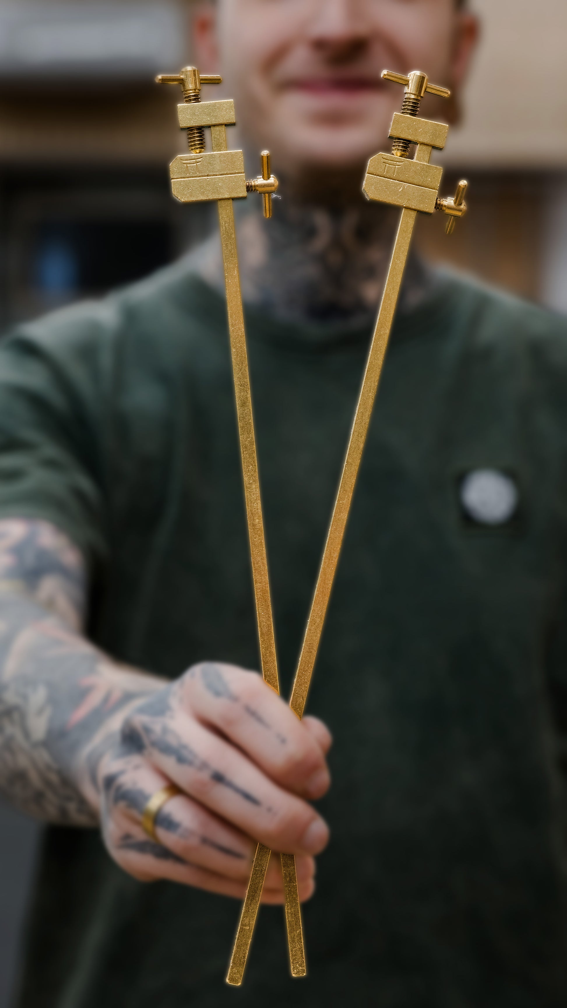 OPTIMALE SICHTBARKEIT UND KONTROLLE: Das extrem schmale Profil dieser Messingzwingen garantiert dir jederzeit freie Sicht auf deine Werkstücke. Besonders bei komplexen Kumiko-Projekten oder feinsten Zinkenverbindungen behältst du die volle Kontrolle über den Spanndruck, ohne dass massive Schienen deine Sichtlinie unterbrechen.