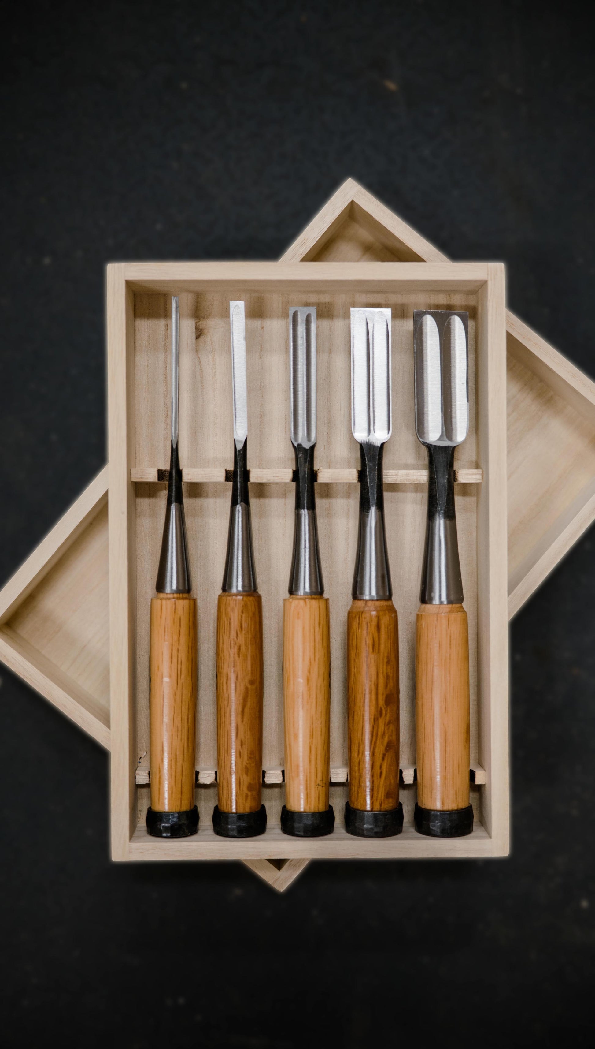 FÜR PRÄZISE HOLZVERBINDUNGEN UND FEINE HOLZARBEITEN: Dieses 5-teilige Set japanischer Oire Nomi Stecheisen ist die ideale Grundausstattung für präzises Stemmen, Abtragen und Anpassen von Zapfen, Nuten und anderen klassischen Holzverbindungen – vom groben Aushacken bis zum feinen Nacharbeiten.